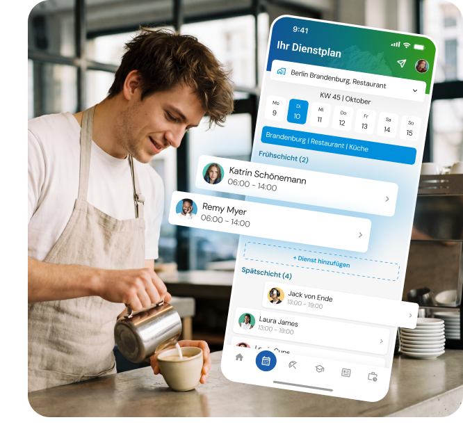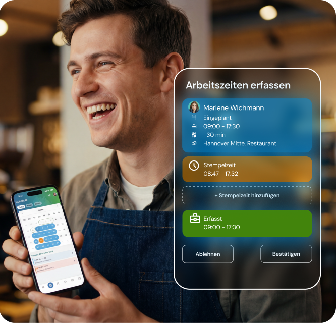 Ihr Team sieht sofort, wo Unterstützung fehlt, und kann Schichten mit einem Klick übernehmen oder tauschen. Das spart Ihnen wertvolle Zeit und sichert Ihren. Ein klarer Wettbewerbsvorteil.