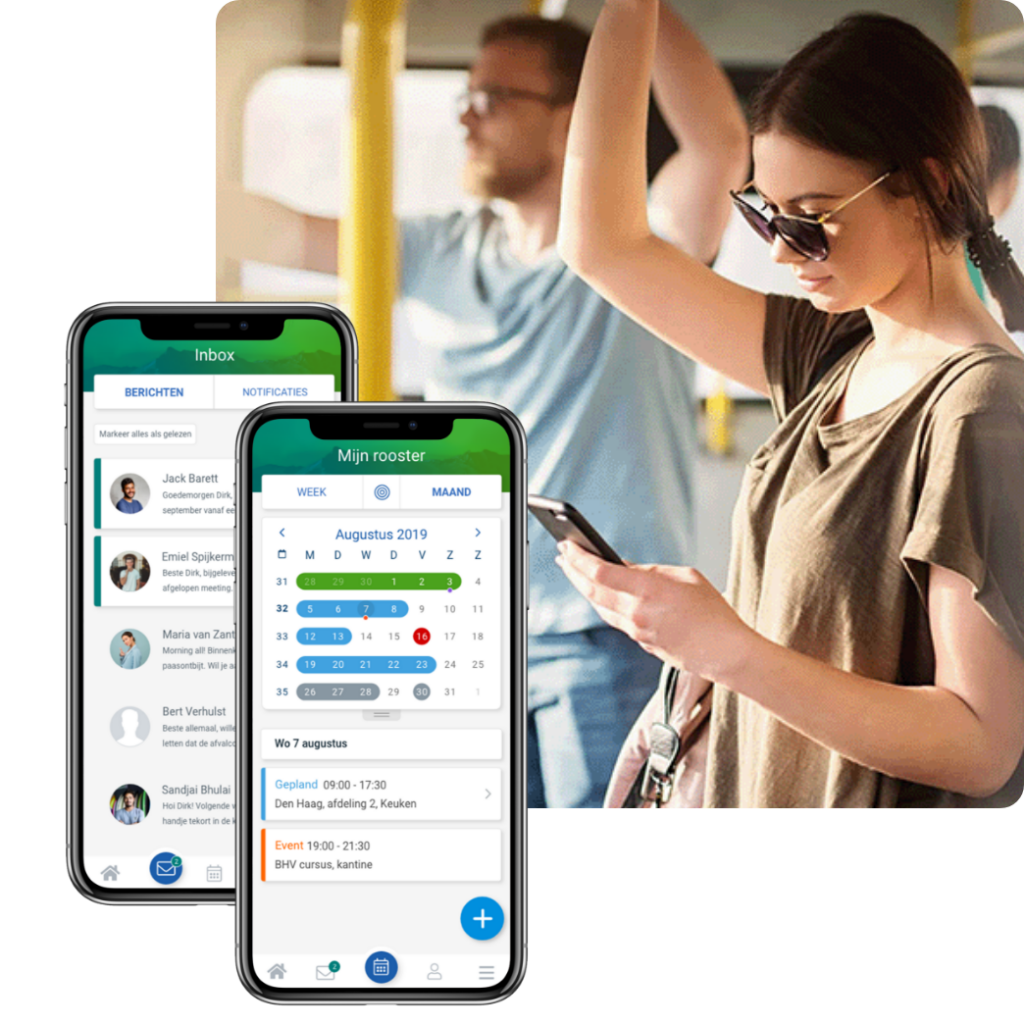 Met de app hebben je medewerkers altijd hun rooster bij de hand. Zo kunnen ze reageren op open diensten (waar jij kan kiezen tussen de aangemelde medewerkers), verlof indienen en hebben ze inzicht in hun vakantiesaldi. Bij een wijziging in het rooster krijgen de medewerkers gelijk een melding in de app. Hierdoor is de planning net als je kledingrekken altijd on point.