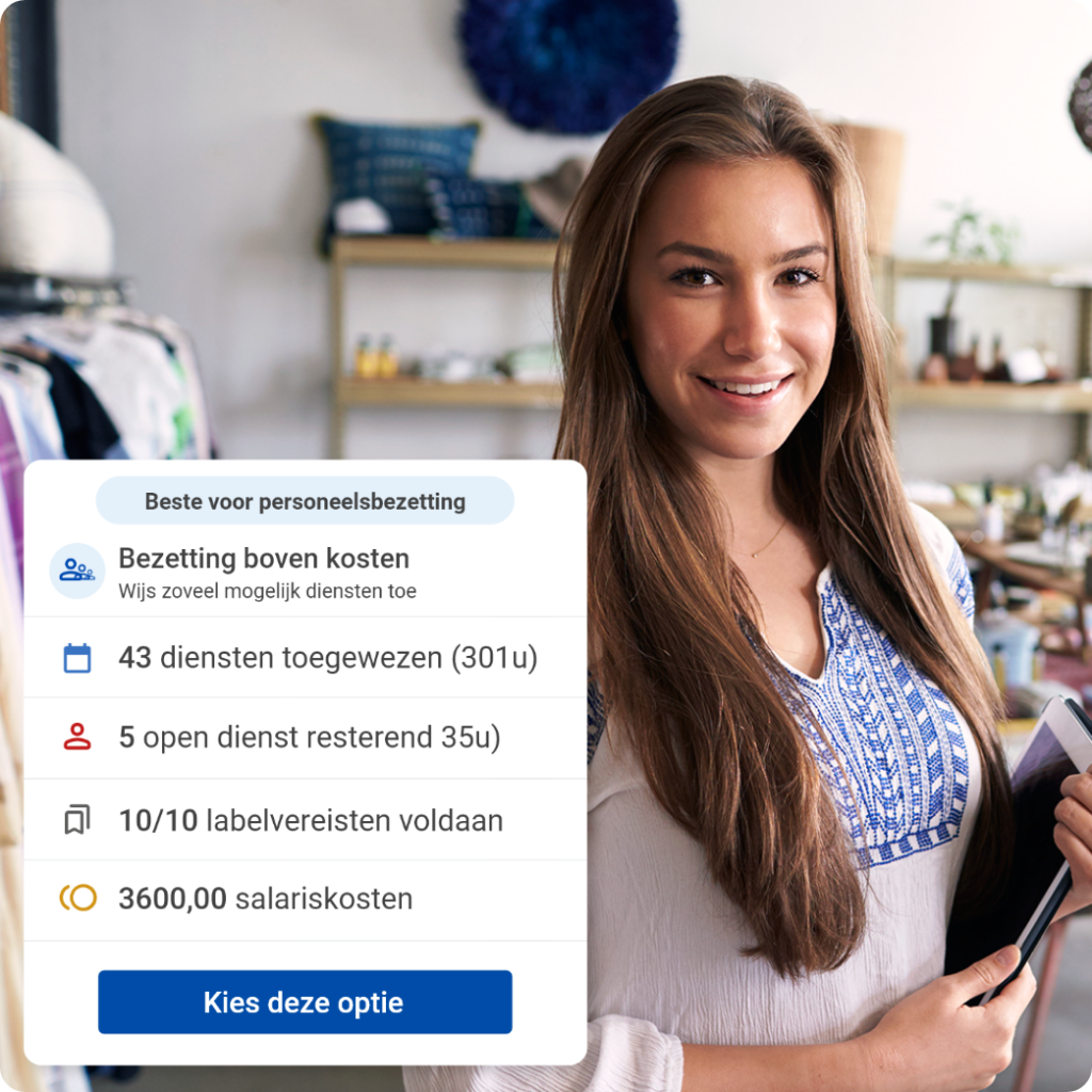 Bij het plannen in een kledingwinkel moet je rekening houden met variabele klantstromen, verschillende soorten winkels (boetieks, outlets, ateliers) en diverse contractvormen van medewerkers. Dit maakt het steeds moeilijker om de personeelsbezetting efficiënt te plannen, vooral wanneer je werkt met meerdere vestigingen en verschillende lokale invloeden zoals promoties, feestdagen of evenementen.